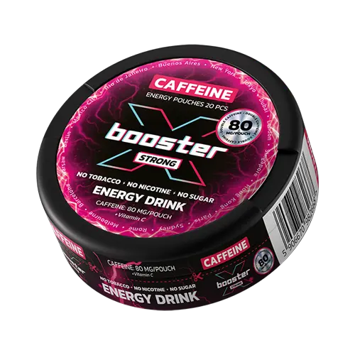 Meet X-BOOSTER ENERGY DRINK 80mg, the ultimate solution for clean, long-lasting energy without tobacco, nicotine, or sugar. Each slim pouch delivers a powerful 80 mg of caffeine, giving you the same kick as a strong energy drink but in a modern, discreet format.