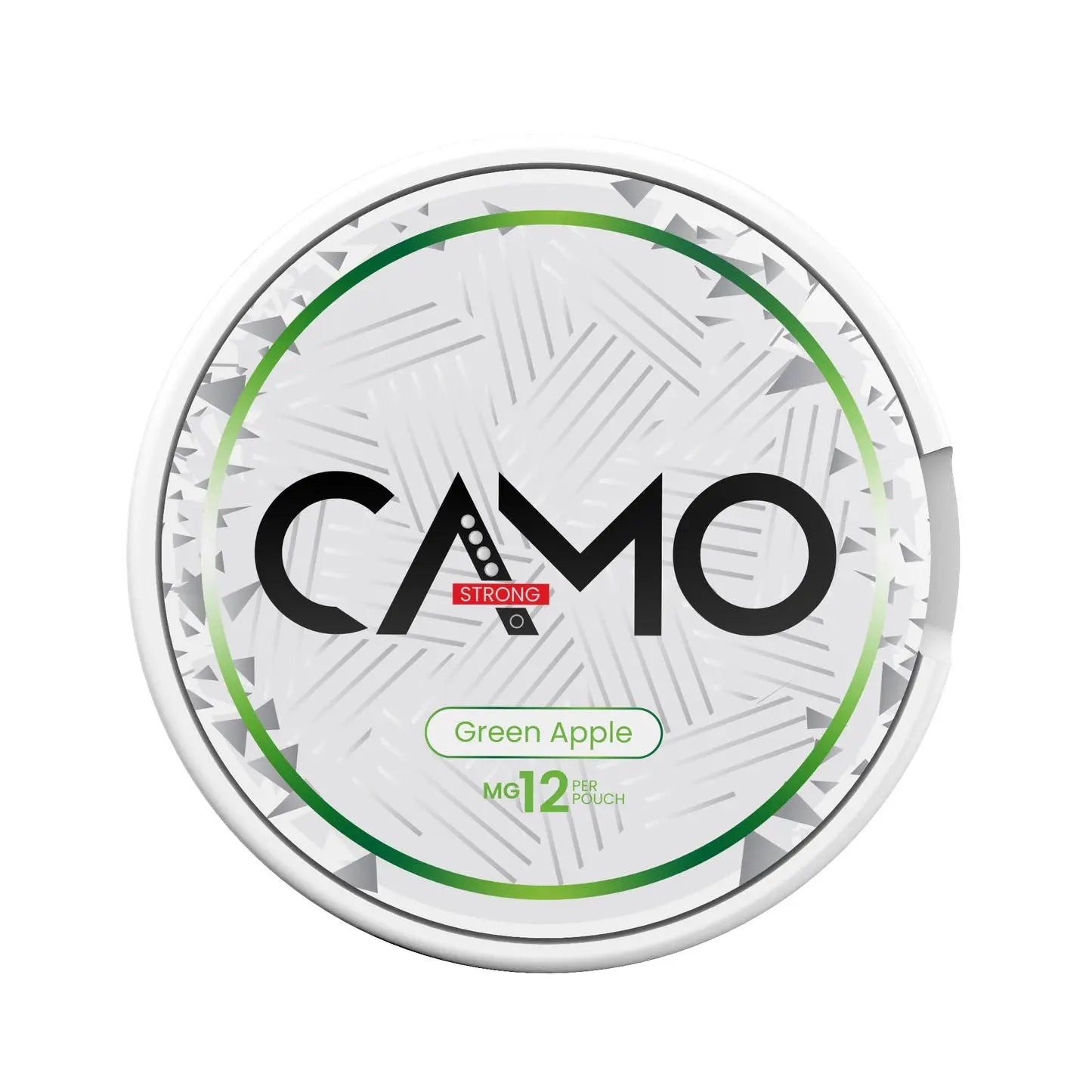 CAMO - Green Apple 12mg ofrece el sabor refrescante de las manzanas verdes en un pouch de nicotina slim y 100% libre de tabaco. Esta versión Extra Strong contiene 12 mg de nicotina por porción (16 mg/g), perfecta para usuarios experimentados que buscan intensidad y frescura en un solo producto.