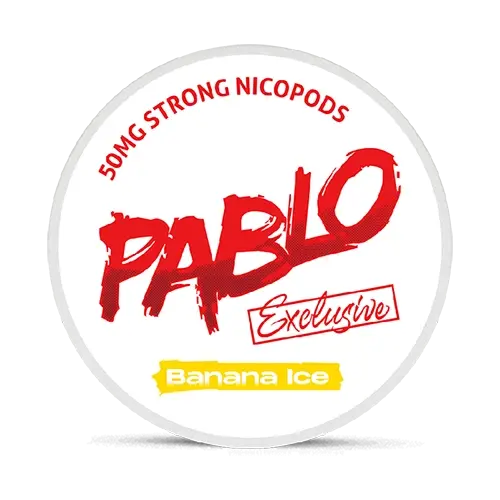 La lata de Pablo Exclusive Banana Ice incluye 20 porciones blancas y delgadas. Gracias a su diseño slim, los pouches se colocan cómodamente y de forma discreta bajo el labio, ofreciendo un sabor intenso de plátano con menta.